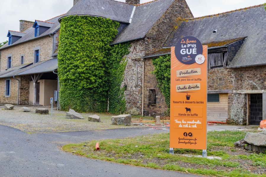L’exploitation du Petit Gué se trouve sur la commune de Dol-de-Bretagne à 2 km du lycée. Elle compte aujourd’hui 148 ha sur lesquels sont conduits trois productions animales : vaches laitières (avec atelier de transformation pour une production de yaourts et de lait pasteurisé), porcs bio et un petit élevage de buffles.