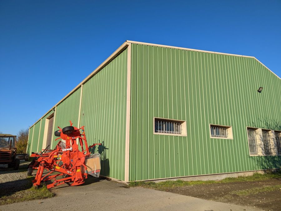- Stabulation : 84 places à l’auge, racleur automatique, box de vêlage, case de contention
