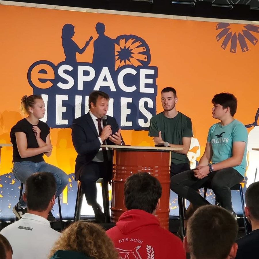 A l'occasion du SPACE de Rennes, plusieurs de nos étudiants ont interrogé Loïg CHESNAIS-GIRARD, président de la Région Bretagne. Face à lui, des jeunes en BTS ACSE et BTS PA conscients des enjeux et des défis à relever pour les agriculteurs. Unanimité sur un point : la passion qui les anime. Des échanges passionnants.