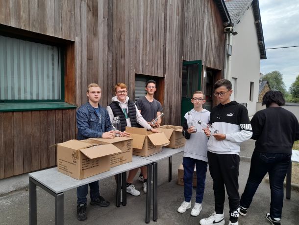 Distribution des gourdes du lycée aux nouveaux élèves par le groupe "environnement" des ambassadeurs des transitions. On limite le plastique !