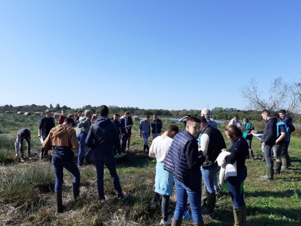 Les élèves de Terminale CGEA ont visité le marais de Saint-Coulban, une zone naturelle gérée par la fédération de la chasse. M. Lefranc de la fédération de la chasse, a expliqué la manière de gérer la biodiversité sur cet espace et les liens avec les agriculteurs qui valorisent les prairies permanentes de cette zone.