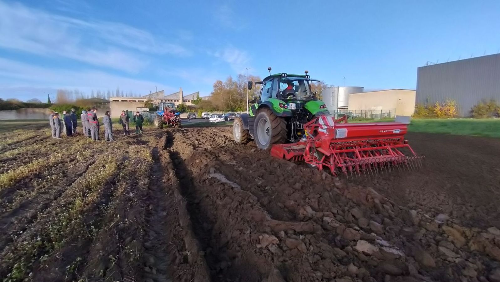 Dans le cadre d'une Pluridisciplinarité en Seconde Agroéquipement puis avec les CAP2 Métiers de l'agriculture, nous avons organisé un chantier de semis d'orge derrière labour dans la parcelle en arrivant au Petit Gué. Nous avons pu mettre en application les réglages vus en cours sur la charrue et sur le combiné de semis.