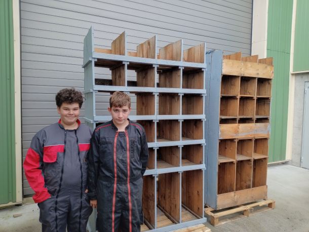 Un grand bravo aux élèves de 4ème pour la restauration de 4 étagères en bois. Les Ets Werschuren nous ont fait don de deux anciennes très grandes étagères stockant de pièces détachées agricoles. Les élèves ont entièrement restauré les étagères pour en faire 4 avec 2. Beaucoup d'énergie déployé sur ce projet et 2 couches de peintures plus tard, les voici en direction du nouveau magasin pièces/stockage agroéquipement pour une deuxième vie.