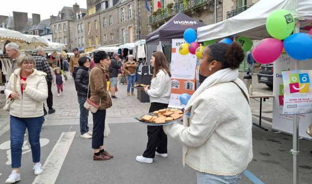 Les élèves de Seconde Vente, Shanael, Annaelle et Mathéo ont animé, samedi 11 octobre, le stand dédié à la journée nationale du commerce de proximité aux côtés de M. Coadic, adjoint en charge des commerces de Dol.