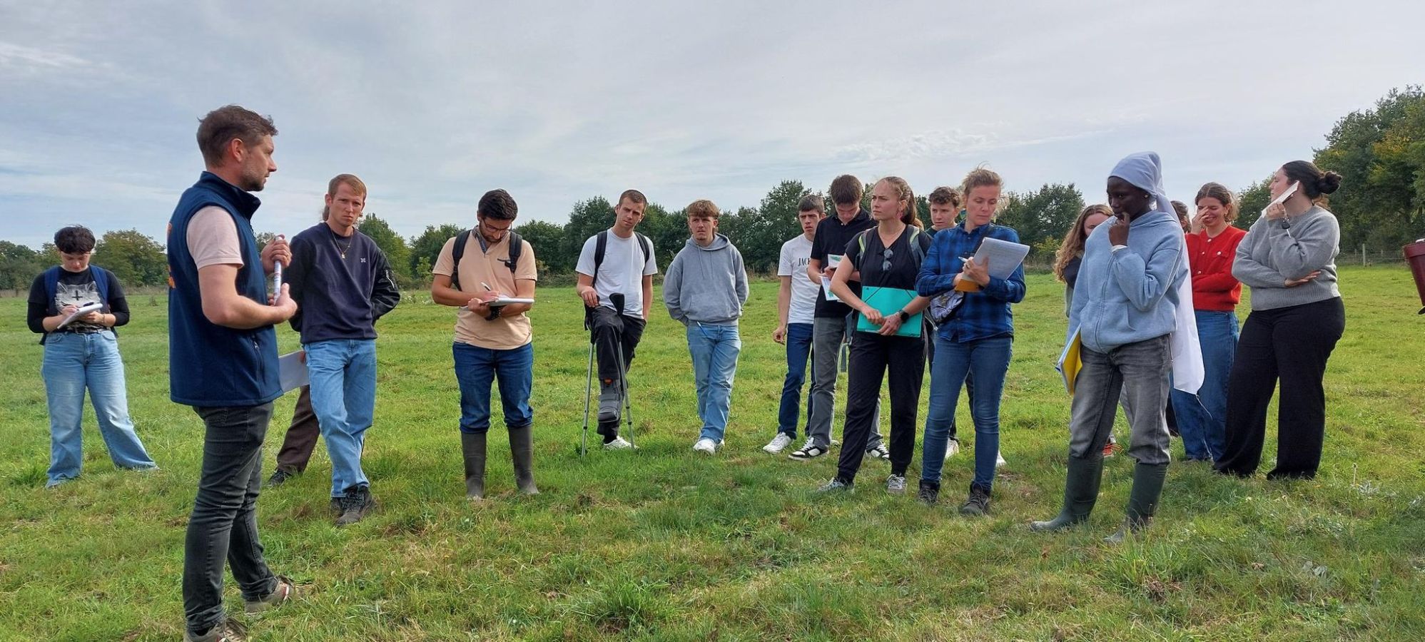 Jeudi 2 octobre, les classes de Terminale STAV et CGEA ont participé aux animations proposées par Agrobio sur une exploitation à Noyal Chatillon sur Seiche. Après une conférence portant sur l'intérêt de préserver de la biodiversité sur une exploitation agricole, ils ont visité les infrastructures agroécologiques de l'exploitation.