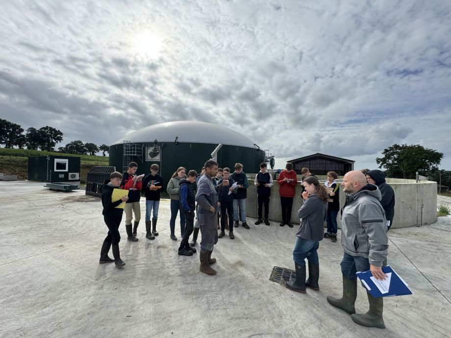 Les élèves de 3ème B ont visité la méthanisation AGRI-BAIE. M. Blanchet leur a fait découvrir le fonctionnement : depuis les cultures méthanogènes et l'élevage jusqu'à la production et l'injection de gaz dans le réseau.