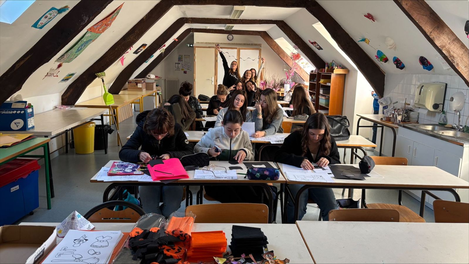 Afin de préparer les stages auprès des enfants, les élèves de CAP 2 SAPVER ont des cours d’animation dans une salle dédiée aux activités manuelles. Les réalisations sont surtout axées sur le travail du papier (élément facile à trouver et peu cher). Activités que les élèves pourront reproduire lors de leur stage en Services à la Personne au mois de novembre.
