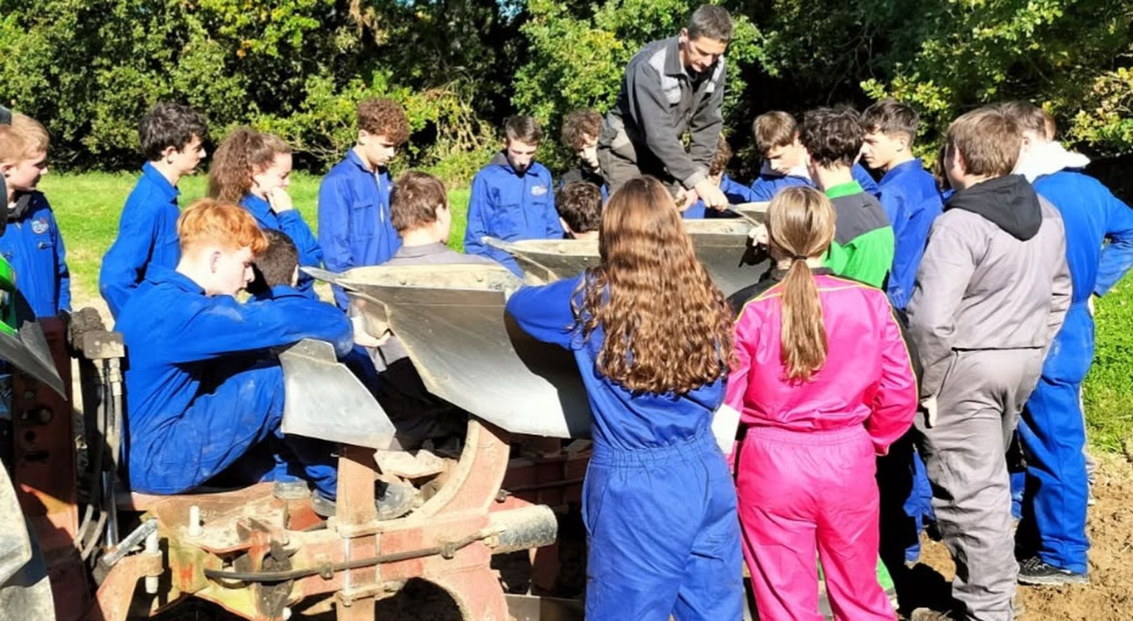 Les élèves de seconde Agroéquipement ont profité d’un superbe soleil pour un TP grandeur nature au champ, consacré à la charrue. Au programme : réglages, utilisation du matériel, et bien sûr un peu d’agronomie pour comprendre pourquoi on laboure encore aujourd’hui.