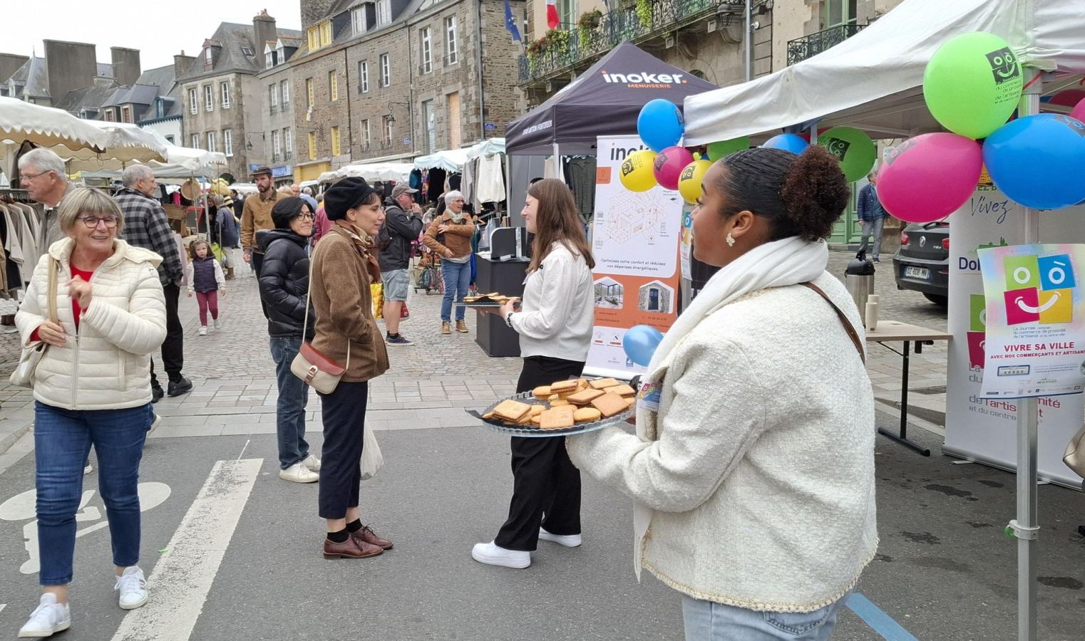 Les élèves de Seconde Vente, Shanael, Annaelle et Mathéo ont animé, samedi 11 octobre, le stand dédié à la journée nationale du commerce de proximité aux côtés de M. Coadic, adjoint en charge des commerces de Dol.